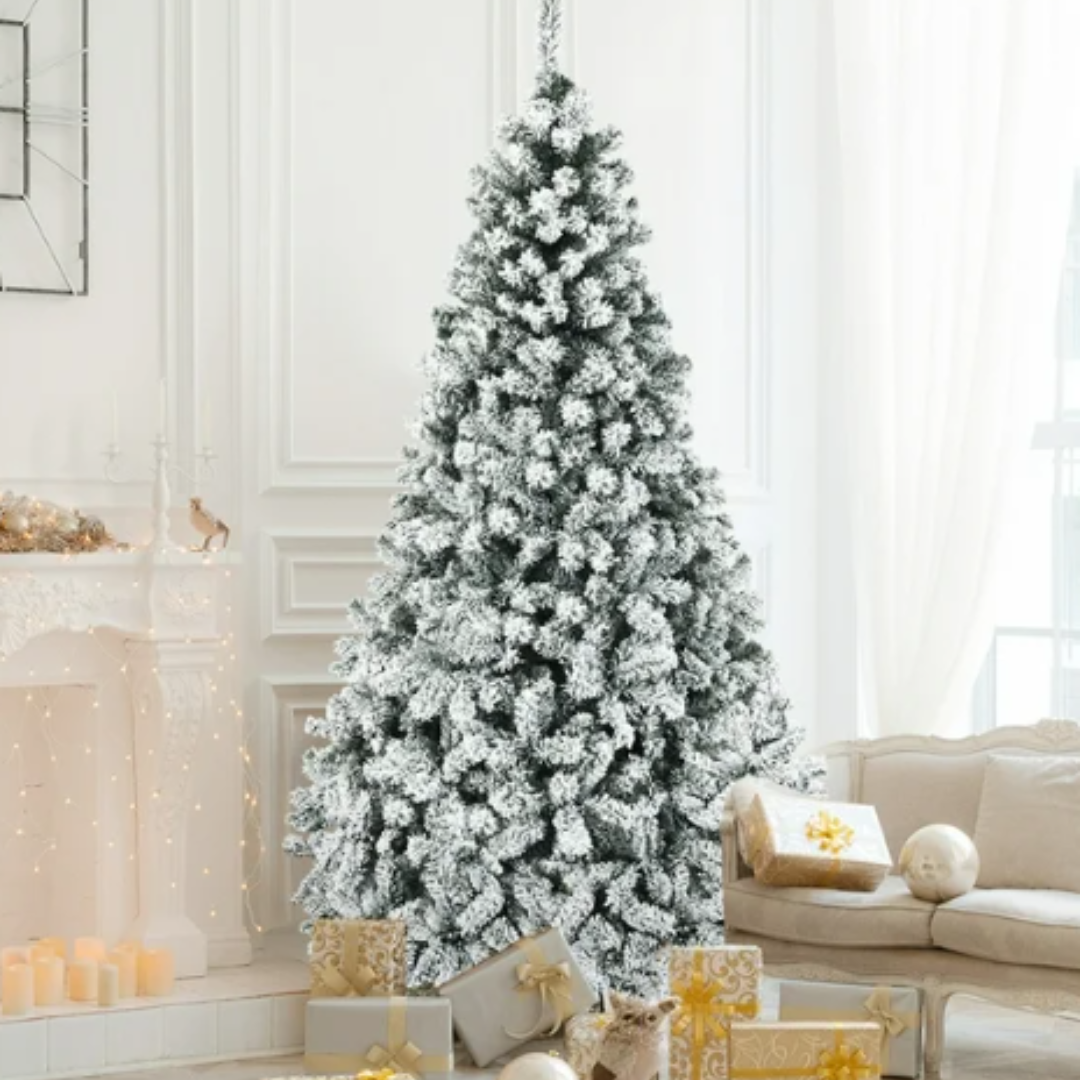 The snow-flocked design adds a soft, wintry touch, replicating the look of freshly fallen snow on full, natural-looking pine branches. The pre-lit feature eliminates the hassle of stringing lights, ensuring a warm, glowing ambiance from the moment it’s set up. Its hinged branches allow for easy assembly, shaping, and storage, making this tree a practical and high-impact décor solution.
